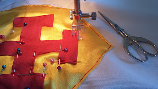 So here we are! What is more masculine than a medieval knight? A while back I had made T. a knight hood and costume. For this week's challenge I made a similar costume for "Claude" my old doll.